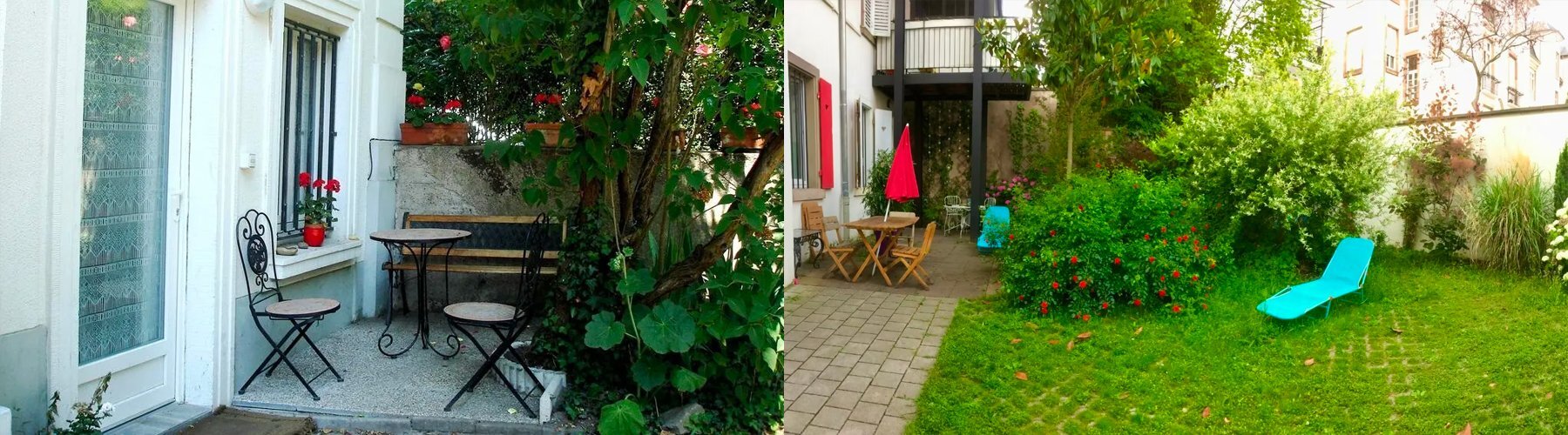 La Villa Schiller côté jardin est entourée de Consulats et représentations permanentes auprès du Conseil de l’Europe. Les 2 petits appartements cosy sont situés côte à côte, à 10 minutes à pied du Parlement Européen. L’entrée se fait par la double grille, à droite de l’hôtel particulier 1900, vers le jardin. Ainsi, ces chambres meublées de 17 m2 avec cuisine, idéales pour 1 ou 2 personnes sont des petits appartements douillets ayant chacun leur entrée indépendante, avec une grande terrasse près de l’abri à vélos.