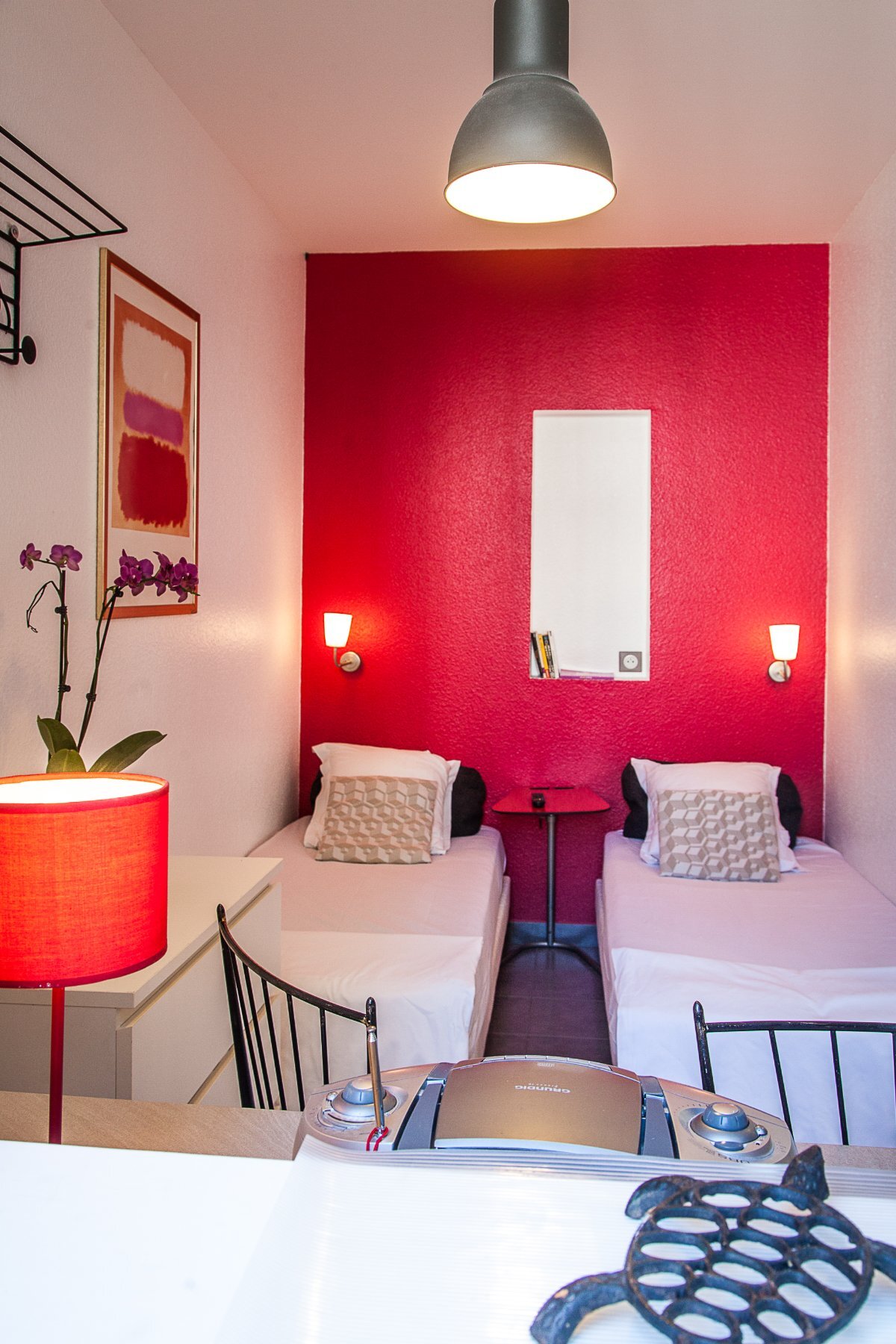 Studio 2 : 1 grand lit 160×190 cm, possibilité 2 lits individuels